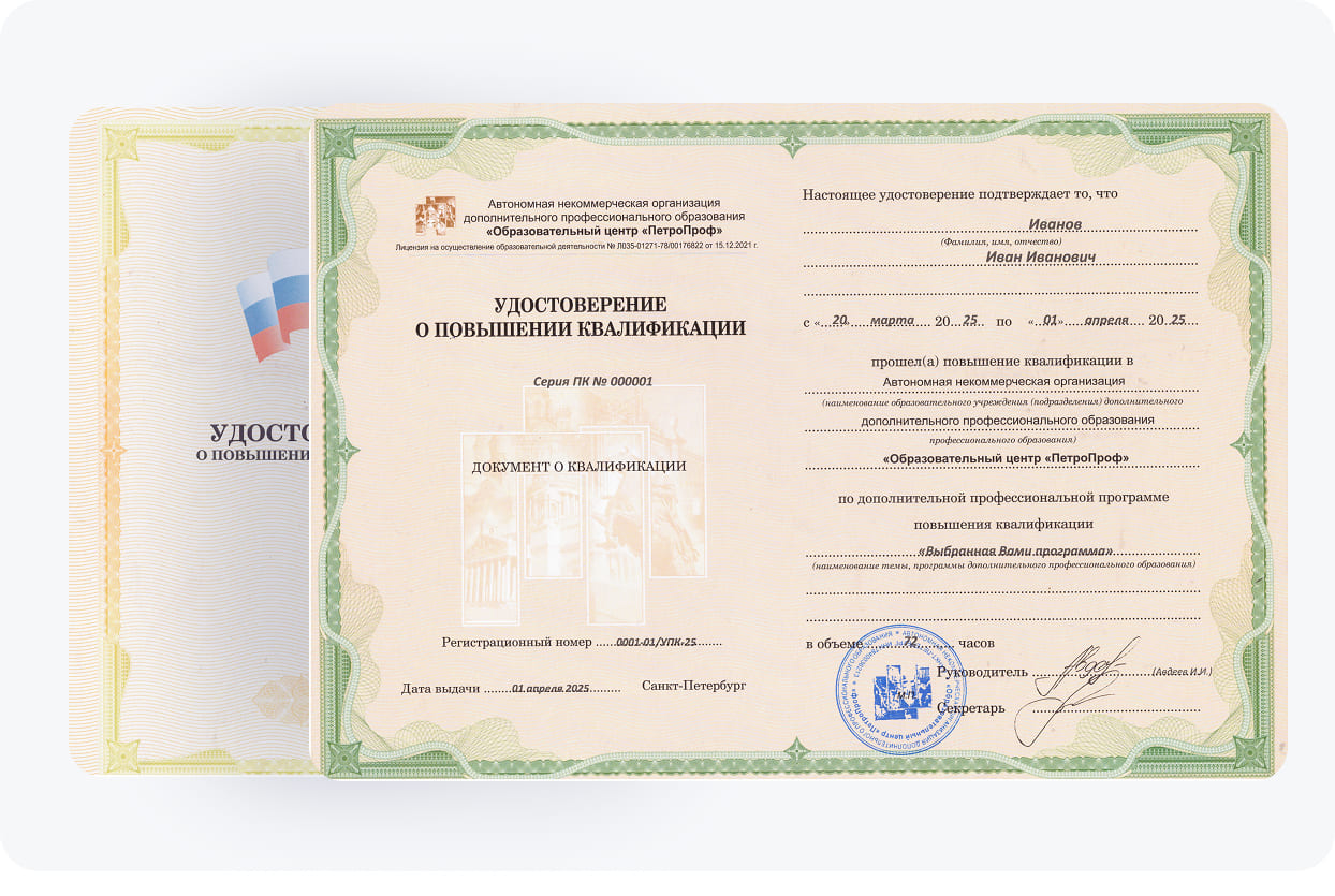 По завершении курсов и прохождению аттестации наши выпускники получают удостоверение о повышении квалификации (УПК). Этот документ об образовании подтверждает наличие необходимых компетенций и знаний для безопасной эксплуатации подъёмных сооружений. Наличие диплома данного образца является обязательным условием допуска к работе согласно нормативным актам Ростехнадзора.